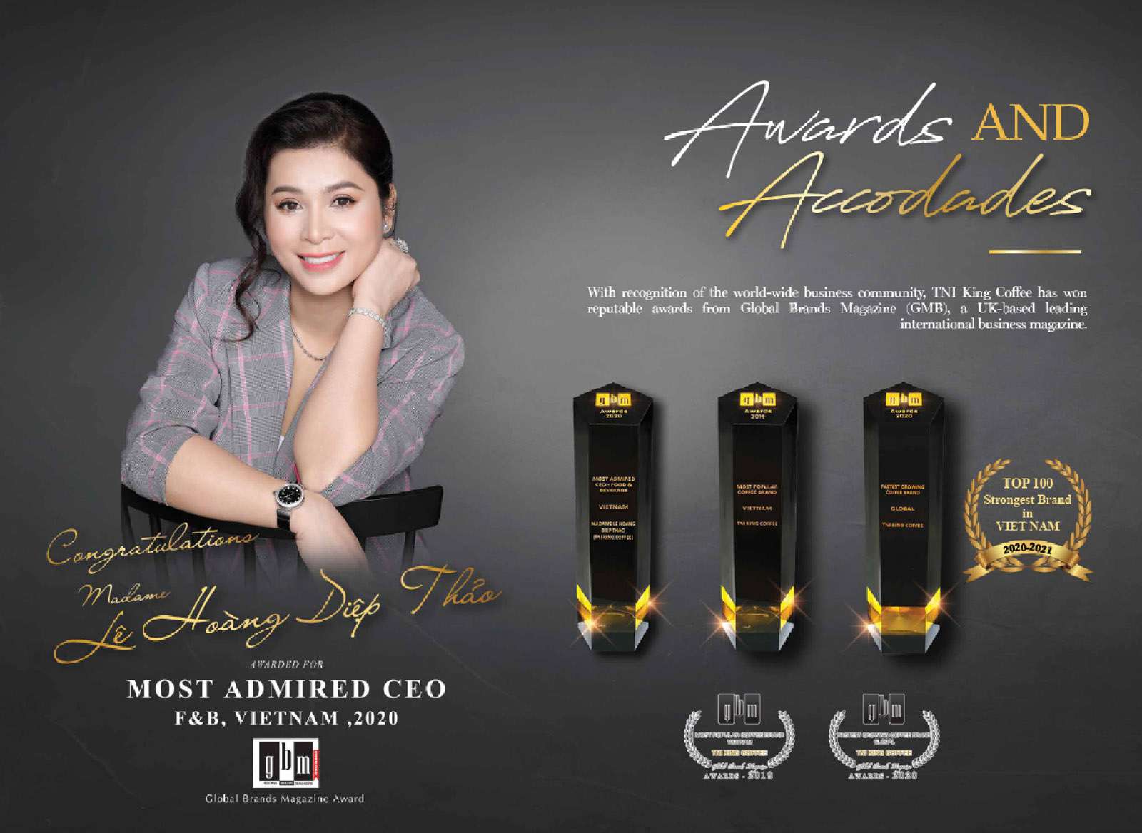 Thương hiệu cà phê Việt Nam duy nhất nhận giải thưởng “Most Popular Coffee Brand, Vietnam 2019” của Global Brand Awards năm 2020.